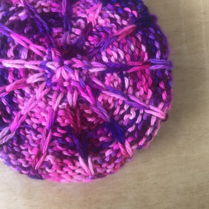 Using bulky yarn, this pattern is a super fun and satisfying hat project that is highly textural, knits up quickly and uses simple stitching skills for maximum effect. An atypical construction, the body is knit flat, only going in the round for the crown and brim. This pattern is perfect for a hand-dyed yarn where the potential for pooling is used as an advantage.