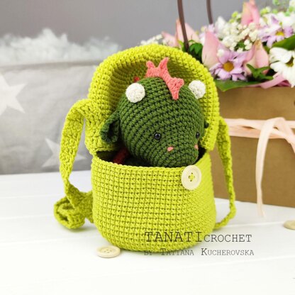 Material: • yarn YarnArt Jeans or ALIZE cotton gold (55% cotton / 45% acrylic) • hook 2.0 mm • soft stuffing • scissors • 2 black safety eyes 6 mm • 1 button for the bag • pins for sewing the parts at the right spot • needle for sewing
