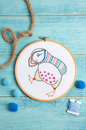 Hawthorn Handmade Puffin Contemporary Embroidery Kit - 12 x 15cm / 4.72 x 5.9in