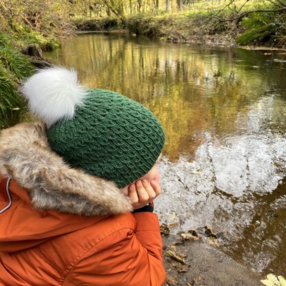 This beautiful beanie hat is worked in the round from the brim to the crown. It has a faux cable pattern that is created using yarn overs and slipped stitches. Hayward is a type of kiwi plant that grows in bunches and look a little like this stitch work.