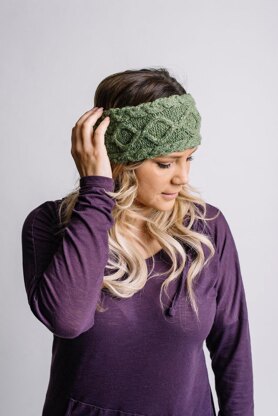 Texture and color combine effortlessly in this trendy headband earwarmer. Complete with a cable and braid design, Hazel is a cozy buttoned headband you’ll want to wear all winter long. This is a cozy buttoned headband with a cable and braid design. The headband is worked side to side on the short end as two mirrored braids snake along the edge and a loopy cable cascades along the centre on a reverse stocking stitch background.