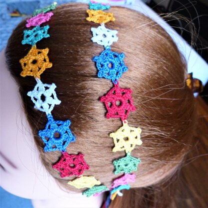 A very colorful garland of flowers that can be worn as a headband, to tie hair in a ponytail, decorate a bun or even as a necklace. The realization is very easy, it only requires regularity in the making An ideal and joyful model to use the rests of thread from previous work. They can even be a little different in thickness. The model photographed is made of medium pearl cotton (10) but can also be made with a finer pearl cotton (20) to give it a more sophisticated look. The PDF tutorial includes a main diagram and 8 detail diagrams as well as a step-by-step explanation with 34 photos.