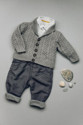 Grandad style Cardigan with intricate cabled patterning. Charted design.