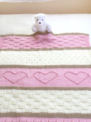This beautiful Heart Blanket pattern has two sizes: a baby blanket and a full size throw. The blanket pattern is easy to knit with simple, basic stitches. The baby blanket size is knit with worsted weight (10 ply) yarn and size 8 needles. The finished size is 30 by 35 inches. The full blanket size is knit with worsted weight yarn, held double, and size 13 needles. The finished size is about 48 by 56 inches. The pattern is written in English only.