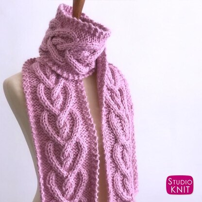 Studio Knit's Heart Cable Scarf is a sweet intermediate level project. Knitted with super bulky yarn and large needles, this project knits up quickly and looks really impressive. Create this beautiful texture of interlocking Celtic hearts for your next gift filled with love. Enjoy!