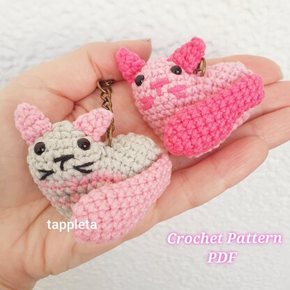 Crochet Heart Cat keychain pattern PDF. Valentines day keychain heart cat crochet small gift. A very quick and easy Valentines Day Project!. Attach a Keyring to it and convert it to a cute Keychain! This pattern is suitable for those who have crochet skills for beginners and know the magic ring, single crochet. Pattern is in standard American terms. Size approx. 2" (5,5 cm.) You will need: - cotton blend yarn ( YarnArt Jeans) - hook 2 mm. - safety eyes 5 mm. - polyester fiberfill - metal key ring - needle, scissors The pdf file contains a step-by-step description. You are free to sell the finished item made from this pattern. PATTERN CAN"T BE SOLD!!! Happy crocheting!!! tappleta💙💛
