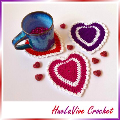 This is a fun crochet pattern for creating heart shaped coasters to decorate your coffee or dining table; or make a delightful gift for someone special :)