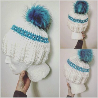 an easy to follow beginner hat with a small twist of colour through the middle. Great if you have a matching pom - shown in the pictures.