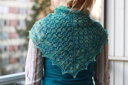 Turquoise shawl is knitted in Manos del Uruguay Lace [75% alpaca 20% silk 5% cashmere; 438yd/400m p