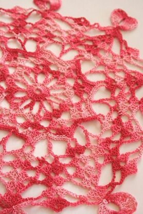This cute doily would make a perfect Valentine's or Mother's Day gift. Make it in the shaded pinks shown, a nice bright red, or even hot pink. The doily measures 14” (35.5 cm) in diameter. Gauge = First 3 rnds = 1 ½” in diameter. No stitch diagram.