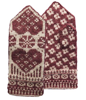 These mittens, knit with sport weight yarn on a set of double-pointed needles, feature colorwork motifs that are relatively simple yet engaging, for new and experienced knitters alike. This pattern is written for one size, but can easily be adapted to smaller or larger sizes (even children's sizes) by adjusting the gauge with different yarn weights and/or needle sizes. There are also instructions for knitting fingerless mitts, great for autumn and spring, or when your hands need just a little extra warmth.