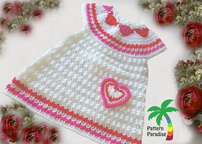 Pretty A-Line jumper/dress for your little sweetheart. The yoke starts off with a hug of hearts and works into a full A-line skirt with a heart patch pocket for little treasures. The textured skirt provides additional interest. Match it up with the coordinating sweater (separate pattern) for an adorable outfit.