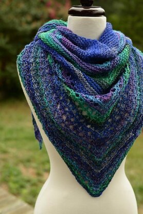This simple triangle shawl is worked in garter stitch and garter eyelet, meaning that it is completely reversible. It is designed for a sportweight yarn and large needles, making it a quick project. Guidelines are given to modify the size, placement of the eyelet border, and yarn weight.