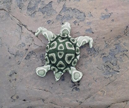 Using DK yarn produces a turtle approx 26cm wide and 9cm tall. Any yarn may be used as long as an appropriate hook is selected, although size and yarn quantities required will change.
