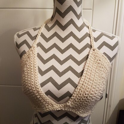 This pattern can be easily customised for your size. The pattern includes sizes for cup sizes A-D, if you need a larger size simply add more rows to your cup! The ties should be long enough for one size fits all but can also be made longer if needed.
