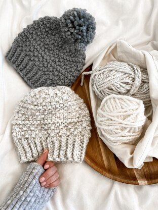 What you need: Yarn: Wool Ease Thick and Quick Approx.: 70 (88, 90) yards, including yarn pom 1- Stitch Marker 1- Clover 4in. Pom Maker - Includes DIY Pom Pom photo tutorial.
