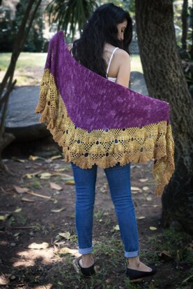 There are many a shawls that have a huge solid section that needs to be worked before you can reach the fun lace part. This shawl hence has a very short solid section which can be worked quickly with dc stitches and the lace section takes over quickly.