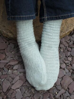 My friend Helen suggested that the textured motif in one of my hat patterns (Squish Me) would be perfect for the pair of comfy, slouchy socks she was wanting—what could I say except, “You got it, Helen". And so this top-down sock was conceived, with four sizes (XS/S/M/L) to fit just about anyone we know. With a quick and easy knit/purl motif, making them for gifts is a pleasure (and putting oneself on the gift list is not at all unreasonable).