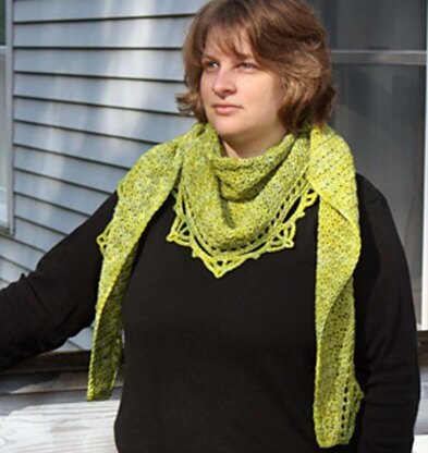 Inspired by the rising sun. Gently curved at the tip (no butt point!), wonderfully textured main body, and a lacy edging. This pattern works great with solid, semisolid, or variegated yarn. Versatile to wear either tip forward, traditionally at the back, or off to the side and asymmetric. Long enough to knot (which stays put!), wrap twice, or attractively pin. The perfect comforting weight when there's a bit of a chill in the air!