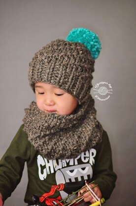 The Chunky Helix Slouch Beanie & Cowl is a chunky and cozy knit for both boys and girls, including the whole family.