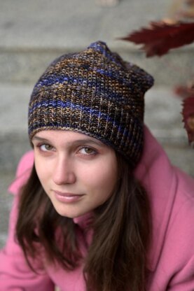 Size One size to fit 56-58cm/22-23” head circumference. Height: 23cm /9”. **Easy adjustable.**Materials Approximately 180 m/200 ya of Aran weight yarn. Sample was made with Woollala Aran, Hello Stranger colorway. Recommended needle sizes US 6/4.0 mm circular needle, US 7/4.5 mm circular needle, US 8/5.0 mm circular needle. Gauge 18 sts x 25 rows over 10 cm/4” in Stockinette Stitch with larger needle. Other Stitch marker. Crochet hook 4.0 mm.