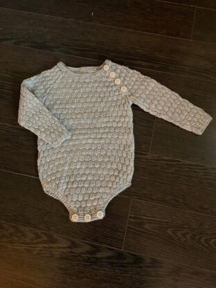 Söt och lätt stickad romper med knäppning i grenen och vid den ena sidan av halsen.