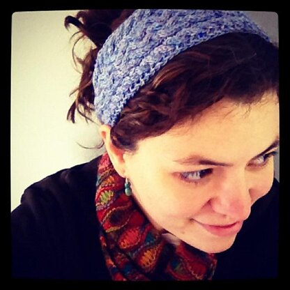 Looking a little further into some design elements from the films, I discovered that the costuming team created some stunning knitwear for the later films. While I didn't find much about the headband, I did come across the stunning [Green Mountain Spinnery][1] yarn in a delightful periwinkle heather colorway. The actual structure of the headband is inspired by Harry's sweater with a six plait cable up the front and Ron's sweater, whic