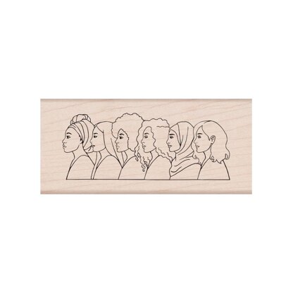 A woodblock stamp celebrating women, unity and diversity. \n\nA Hero Arts woodblock stamp uses FSC-certified North American maple from sustainably-managed forests, all-natural hand-pressed and hand-cut deeply etched rubber, held together with a foam mount that uses specially-formulated, non-toxic and water-based wood and rubber adhesive, and topped with a 3M-quality, UV-rated, scratch-resistant and long-lasting label. Our wood stamps are assembled in our family-run California facility with 100% renewable power. There is no individual wood stamp on the market of the same quality or value as a Hero Arts wood stamp.