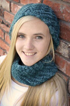 The cowl is knit as a bias parallelogram with knit in i-cord edging, then joined into a cylinder with either grafting or a 3 needle bind off.