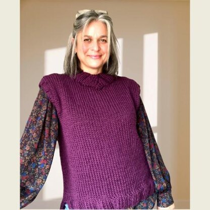 The Hetty Vest is a lovely super chunky sleeveless sweater made from a super chunky yarn, a super quick knit and an invaluable addition to any Autumn / Wonter wardrobe. It is a lovely boxy shape and can be worn cropped and fitted for a contemporary silhouette or loose and relaxed for your off duty moments. Two versions are included, a simple single colour - perfect for beginners or a plaid version for those with a little more experience and some sewing ability.
