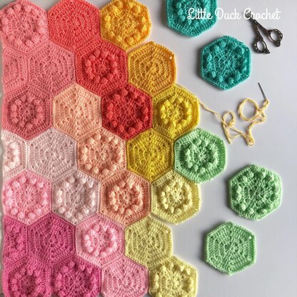 This blanket is full of fun and texture, feature my favourite bobble stitch combined with fun little hexagons. It's the perfect stash buster so no need to buy loads of new yarn!