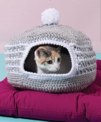 Join Kimmie as she shares with her Mom her experience volunteering at their local shelter...Kimmie loved the idea of having a special home for her new kitty. She told Mom that she wanted something that the kitty could call her own and know that it was hers. So, they talked about what she wanted: something for the kitty to hide in, something to keep it warm and it had to look cute! Mom had an idea! What about super bulky yarn to help hold the shape, give it warmth and then... a pom-pom to give it the perfect spunky touch for the kitty! Kimmie loved it and was so excited to show her new kitty when she brought it home.