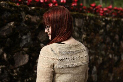 Hieta is a really simple and relaxed sweater worked seamlessly top-down. The sweater has a round yoke that is adorned with simple lacy stitches. The sweater features 3/4 long sleeves and no waist shaping. The back of the neck is shaped taller with short rows.