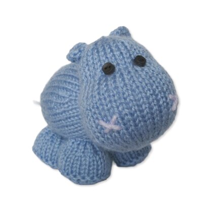 This cuddly little hippo is knitted predominantly in stockinette, with a single crochet chain for their tail. Designed by Amanda Berry @fluffandfuzz, most pieces are knitted in acrylic DK yarns on single pointed needles (not in the round). For confident beginners and above, other techniques used include casting on and off, knits, purls, increases and decreases, and seaming to finish.