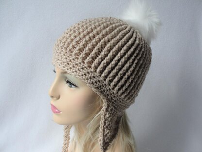 A fun and quick crochet ear flap hat with pom pom and braided pigtails. Sizes for toddlers, children and adult/teens. Textural crochet stitches create great stitch definition. Easily completed in a couple of evenings.