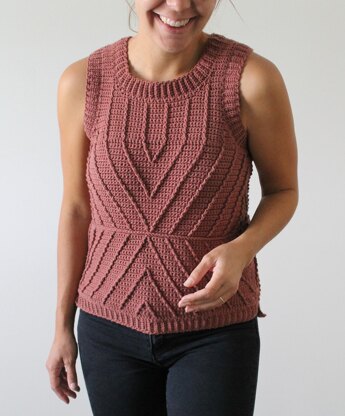 The High-Rise Top is a unique, sleeveless garment filled with eye-catching, textured lines that thoughtfully "connect" at every seam. This transitional piece can be layered, like a vest, or worn by itself, like a tank, making it perfect every season! It features a high-low slit, beautiful ribbed edges, and flattering upper body shaping.