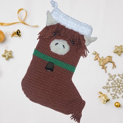 This stocking is a wonderful project for the holiday season, making a thoughtful handmade gift or a cozy addition to your mantle. Download the pattern today and crochet your very own Highland cow Christmas stocking!