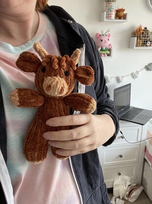 Learn to knit these cute little Highland Cow stuffed toys. These are easy and fun to make and use very little yarn. The perfect gift for any cow lover! Your finished cow will measure roughly 25cm x18cm.