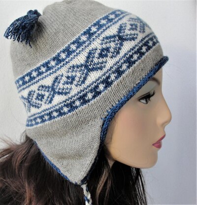 Classic inspired traditional ethnic style beanie. Ear flap style beanie for toddlers, children and adult/teens. Tasseled embellishments and braided pigtails added. Easily completed in a few evenings.