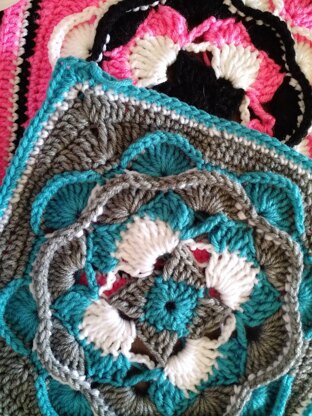 This square is for the advanced beginner. Besides the sc, hdc, dc, & tr you need to also know how to do bpsc.