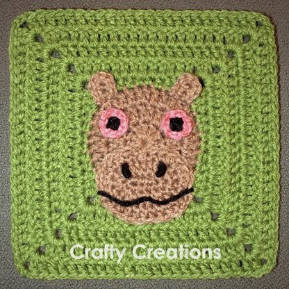 This hippopotamus granny square is approximately 20 cm x 20 cm (8.15” x 8.15”), and can be used as a component for crocheted items such as a blanket or cushion cover. The square can be used repeatedly, or with others. This is the thirteenth of my ‘South African animal’ granny squares, so keep your eyes open for more designs coming soon ;-)