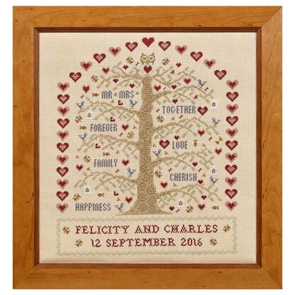 Historical Sampler Company Heart and Tree Wedding Sampler Cross Stitch Kit - 27cm x 32cm