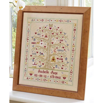 Historical Sampler Company Tree A-Z Birth Sampler, Girl Cross Stitch Kit - 28cm x 34cm