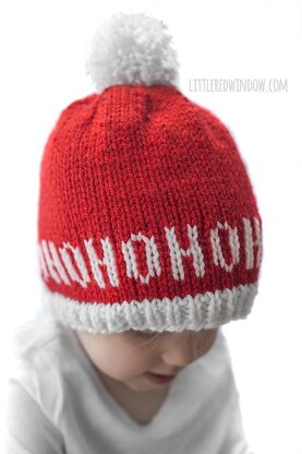 This adorable Ho Ho Ho Santa Hat Knitting Pattern is such a fun knitting pattern for Christmas! The easy to print pdf pattern includes instructions for all four sizes and instructional photos! This adorable baby hat knitting pattern is knit in the round and does require basic knowledge of stranded or fair isle knitting techniques (knitting with more than one color at a time) but it's an easy pattern and great for practicing your colorwork. Your little Santa will look so cute in this adorable Ho Ho Ho hat, knit one up for your yearly holiday photos!