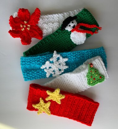 A great way to spruce up any wardrobe during the Holidays! These work up rather quickly so you can make some for stocking stuffers, extra tuck in gifts, and don’t forget, they are lightweight to mail away to friends and family for a lovely surprise Holiday gift! Good thing about giving these for gifts is, you can use up your scrap yarns and it won’t cost you anything! Uses worsted weight yarns, US # 8 and # 5.
