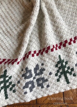 This simple take on Nordic style fair isle is the perfect throw to cuddle under during those long winter evenings. And C2C stitches create a thick and warm blanket with great drape. Bring it out during the holidays for the perfect accent, or keep it by your fireplace all year long for a lodge feel.