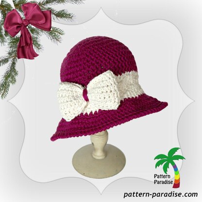 This is an elegant hat that's quick to make and perfect for all ages with an elegant bow. I also offer an option for a sprig of holly!