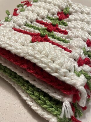 Worked in overlay mosaic crochet, these quick projects can double as gauge swatches while also making great gifts and scrap busters. Embrace holiday peace and joy as you relax into these simple yet rewarding patterns. This is also a perfect pattern for learning overlay mosaic crochet!