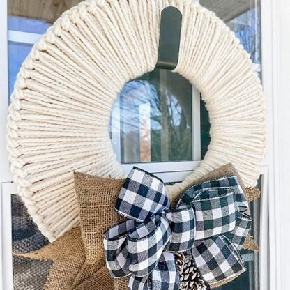 Make a beautiful and easy yarn wreath. This is a quick and easy Holiday project that can be made in less than an hour. Check your local dollar store for craft supplies for an inexpensive wreath. Use two strands of Super Bulky weight yarn or four strands of worsted weight.