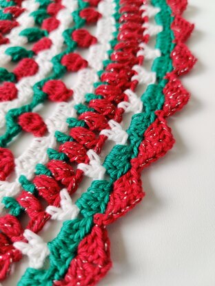 Crocheting a doily is a wonderfully relaxed project where you continue to crochet rounds until the desired size. Okay, there are a lot of yarn ends to weave in. But with a cup of tea (or coffee) and a bar of chocolate (or pack of cookies), even weave in yarn ends becomes a fun (and relaxed) job. With this doily where double crochets (and variations on it) and puff stitches are alternated, you will immediately get into the Christmas mood. The addition of a cotton with glitter makes it a festive doily. Is Christmas over or do you not like Christmas that much, which is of course also possible. Then choose 3 colors (or more) that makes you happy and get started with this pattern. The doily has a diameter of approximately 58 cm.